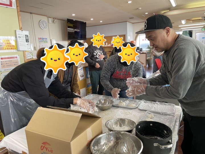 みんなで餅を丸く丸めます😊😊😊😊😊😊