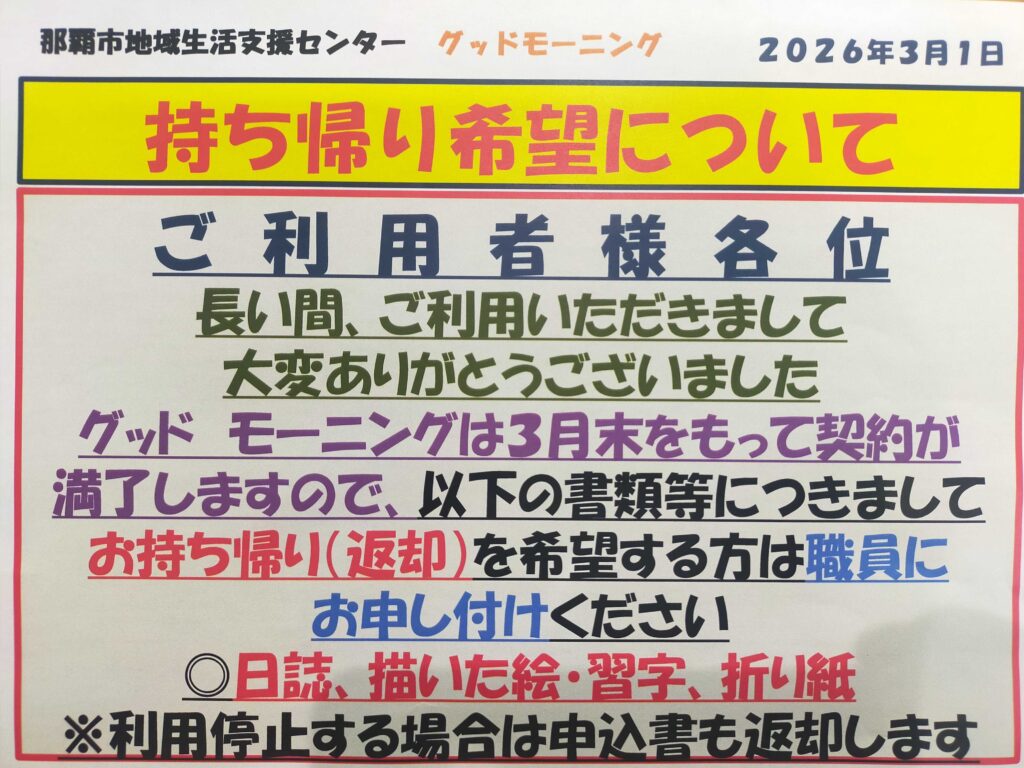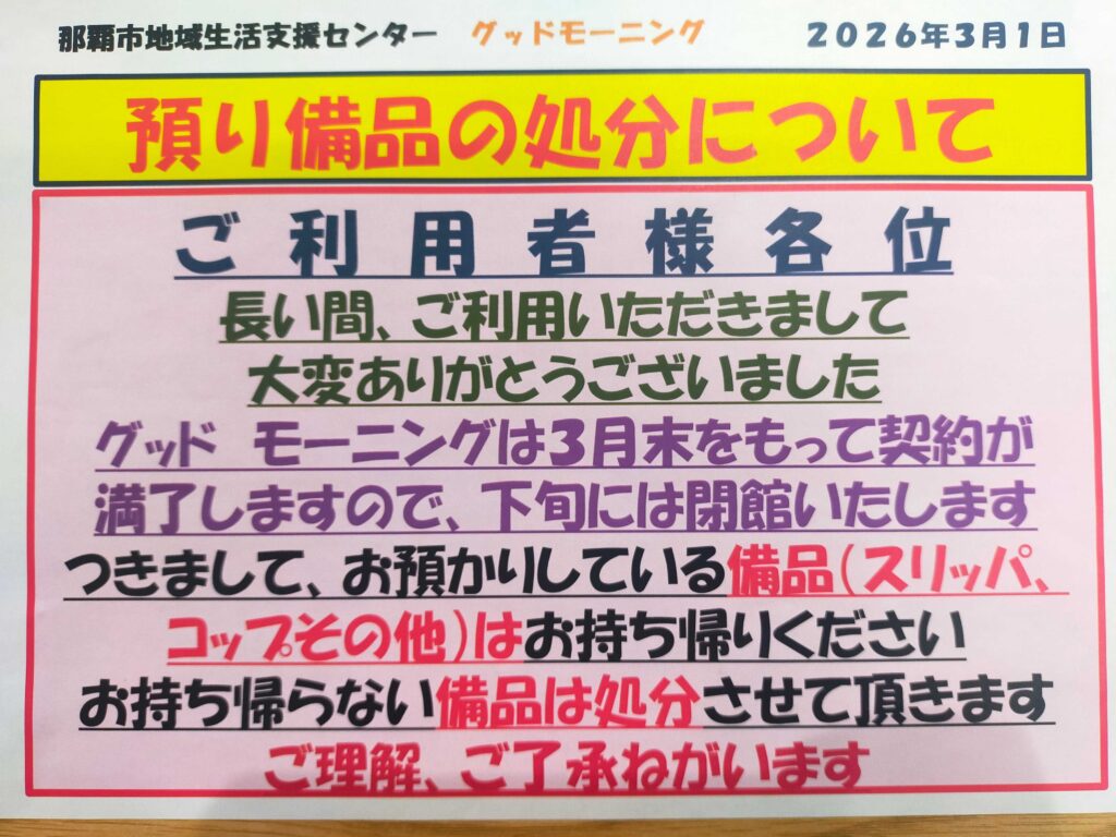 ✨グッドモーニング閉所に伴うお知らせ✨
