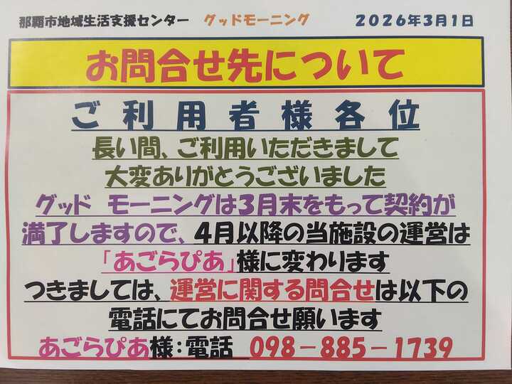 ✨グッドモーニング閉所に伴うお知らせ✨2